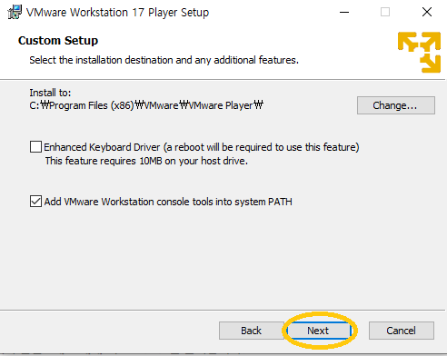 4. 권한 동의 하고 Next 이후 , Custom Setup 건들이지 말고 Next 누릅니다.