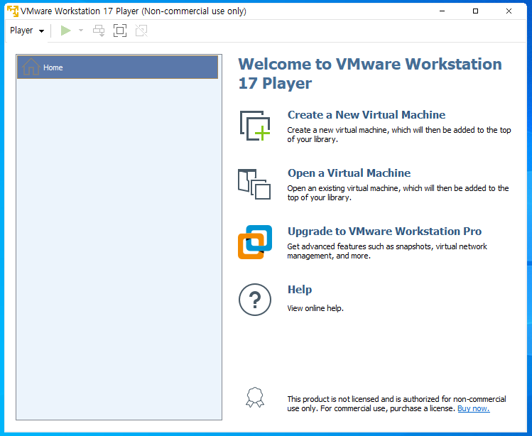 8. 다운로드 완료후 설치된 VMware 실행하고 비상업용 무료버전 사용을 선택하고 Continue 누릅니다.