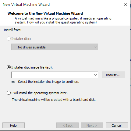 그러면 위의 창이 나올텐데 Installer disc image file 에서 경로를 우리가 다운로드한 iso 파일로 설정합니다.