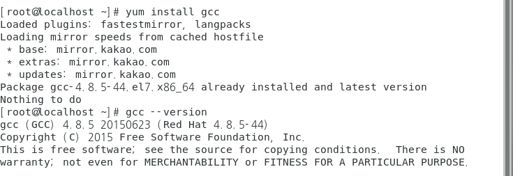 (gcc --version) 을 입력하여 gcc 확인이 되지 않는다고 뜨면 (yum install gcc) 를 입력하여 설치해 줍니다.