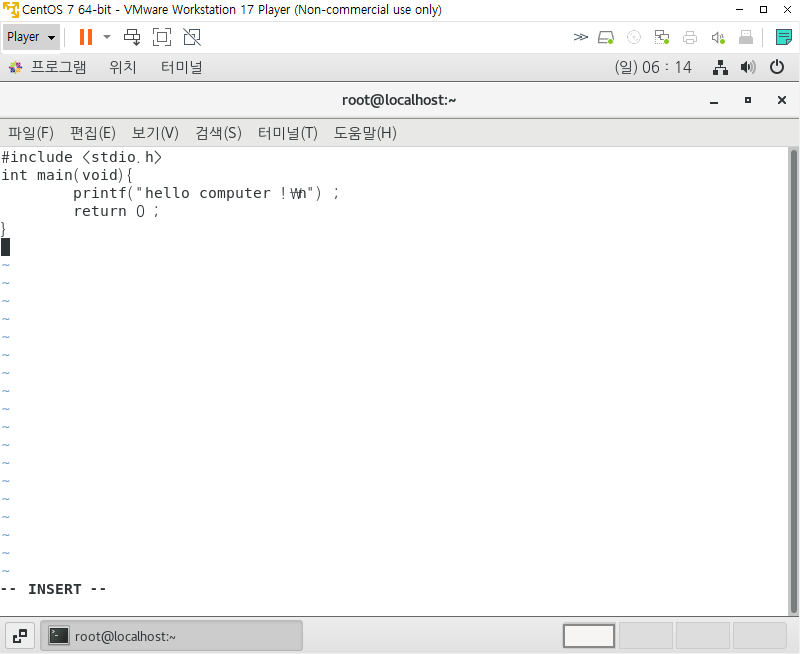 설치를 완료했다면 vi 편집기로 아까만든 .c 파일을 열어 코드를 작성해 봅시다.