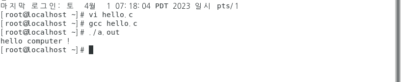 (gcc 파일명) 을 입력하여 컴파일하고 생성된 실행파일을 (./a.out) 을 입력하여 실행해 봅시다.