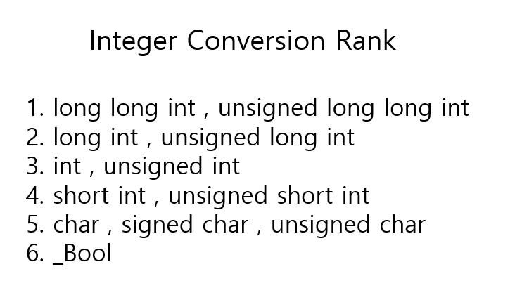 이때 위의 랭크 표에서 A , B 중 4 ~ 6 가 있을 경우 일단 3으로 정수의 승격 ( integer promotions ) 합니다.